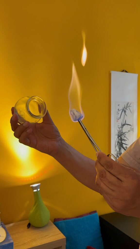 Des ventouses traditionnelles peuvent être intégrées au soin pour renforcer les effets : elles détoxifient les tissus, stimulent la circulation et libèrent les blocages énergétiques.